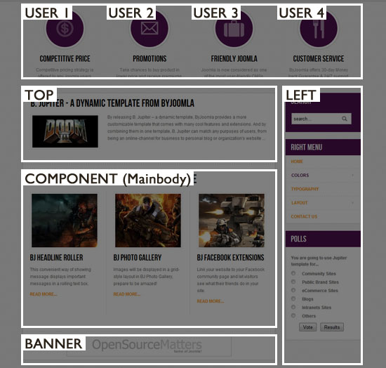 Many extensions offered by ByJoomla (including BJ Image Slider, BJ Photo Gallery and Facebook extensions) are combined together in this new Joomla template to make it match with users’ multiple purposes: online-channel for business, organization’s website or a personal blog. Let’s check out B. Jupiter in details through our demo site, or download packages.